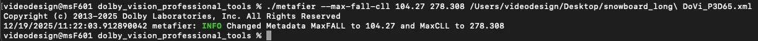 ./metafier --max-fall-cll 104.27 278.308 /Users/videodesign/Desktop/snowboard_long\ Dolby Vision_P3D65.xml