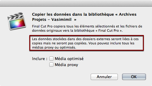 C’est simple. Répéter autant de fois que désiré ces étapes pour avoir un historique des montages. Si il n’y a rien à consolider Final Cut Pro vous prévient.