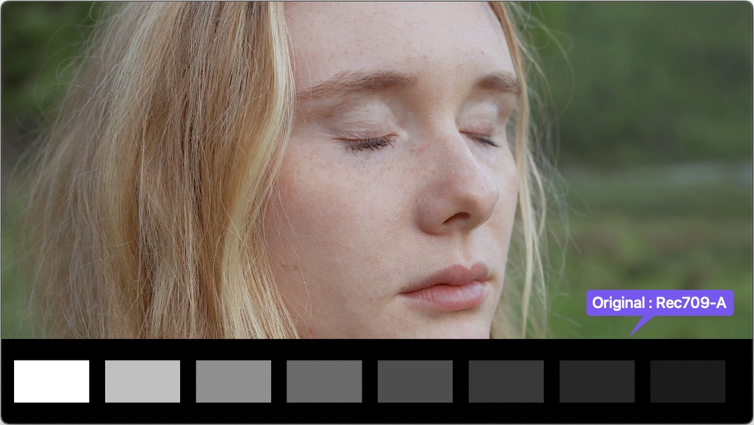 Mon point de départ est un fichier « Rec709 » avec les Tag colorimétriques (1-1-1). voilà ce à quoi il ressemble dans Quicktime (ColorSync en action) :