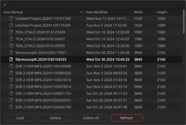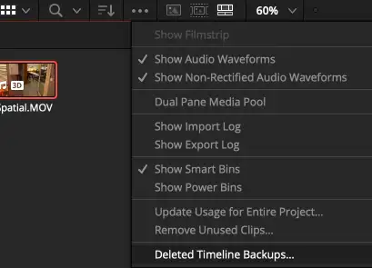 les Sauvegardes automatiques ne disparaissent pas quand l’original·e est effacé·e. On peut donc ressusciter des projet et timeline. Pratique!