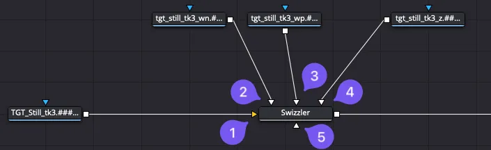 On se trouve ici dans le cas ou les passes d’un logiciel 3D arrivent dans des fichiers séparés. Vue la logique de fusion il faut injecter ces fichiers dans les canaux auxiliaires. Vu la logique de travail des nœuds de fusion cela se fait en début de structure nodale. Avec Resolve/Fusion 20 le nœud Swizzler peux faire ça aussi!