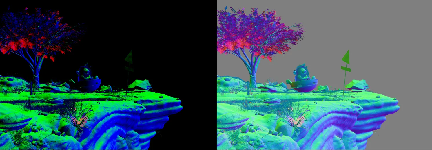 Les Canaux RGB du fichier de la passe de Normal deviennent les canaux Normals de sortie