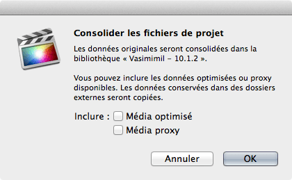 Je prends l’exemple d’une bibliothèque contenant plusieurs Événements et Projets. Toute ou une parties des plans sont transcodés en Optimisé et ou Proxy. Les originaux sont soit dans la bibliothèque soit à l’extérieur, soit un peu des deux 🙂