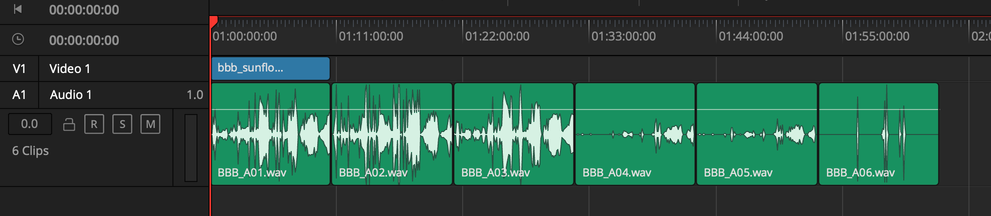 Classiquement le montage dans la page Fairlight se fait « à la souris » en Glisser-déposer car il n’y a pas de bouton ou commande de « montage ».