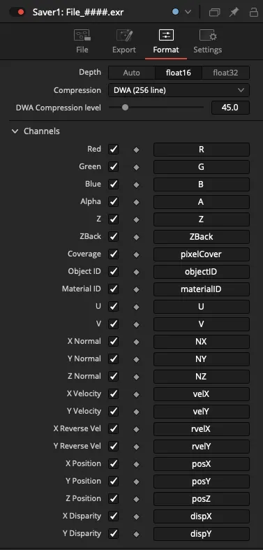 Le node Saver (à droite), fabrique un EXR avec tous les canaux, c’est bien pratique.