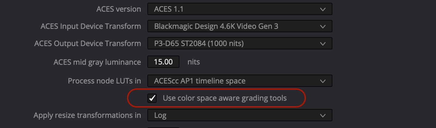 Les outils détalonnage peuvent désormais avoir le sensibilité de l’Output ColorSpace tout en travaillant dans le Timeline Colorspace.