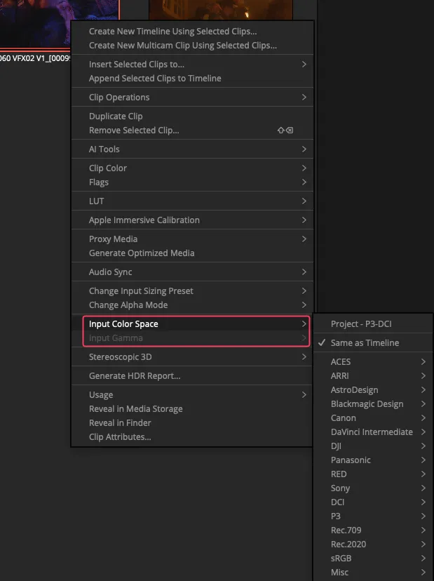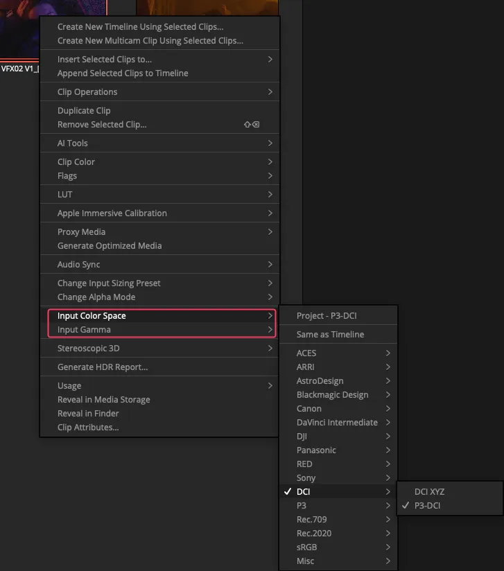 - Le fichier envoyé au VFX a un espace colorimétrique en P3-DCI