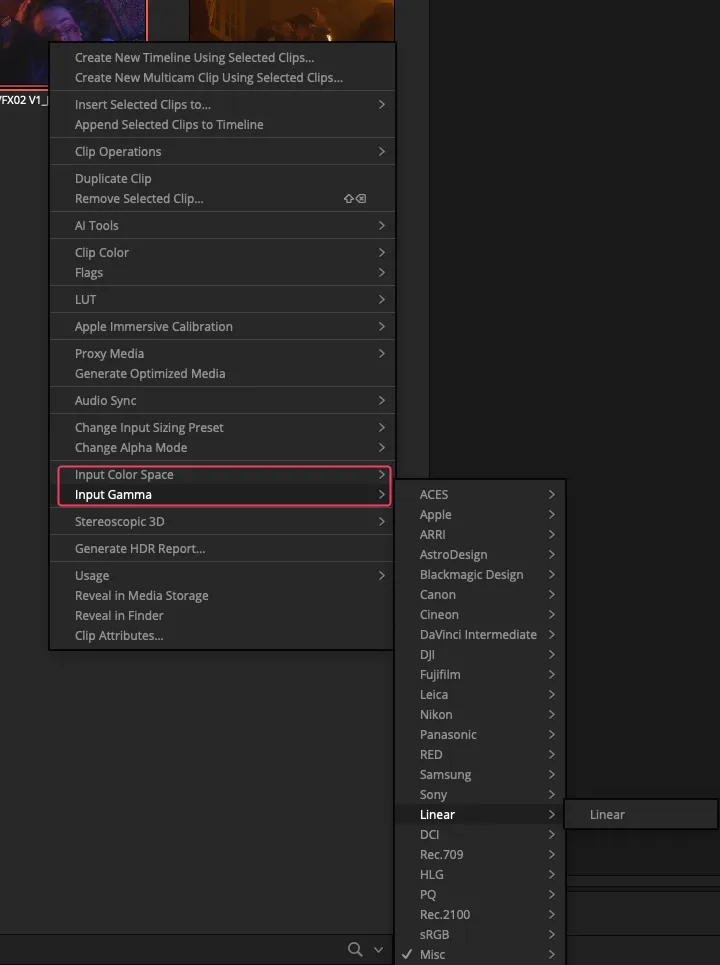 Habituellement, un fichier envoyé au VFX est « linéarisé » avant trucage puis « de-linéarisé » en fin de trucage. C’est ce que fait automatiquement la page Fusion*.