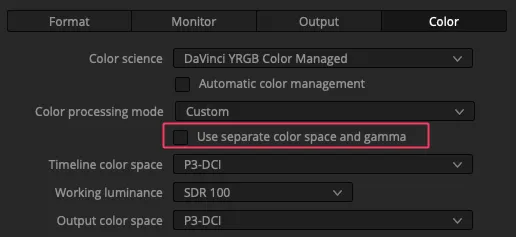 - Le projet/Timeline a une Color Science : Davinci ColorManaged
